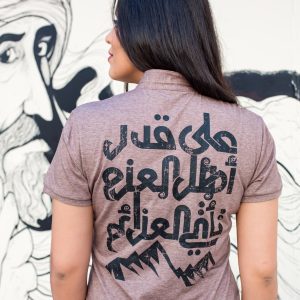 100% Cotton Polo patterned with camels and palm trees that symbolize Dubai.